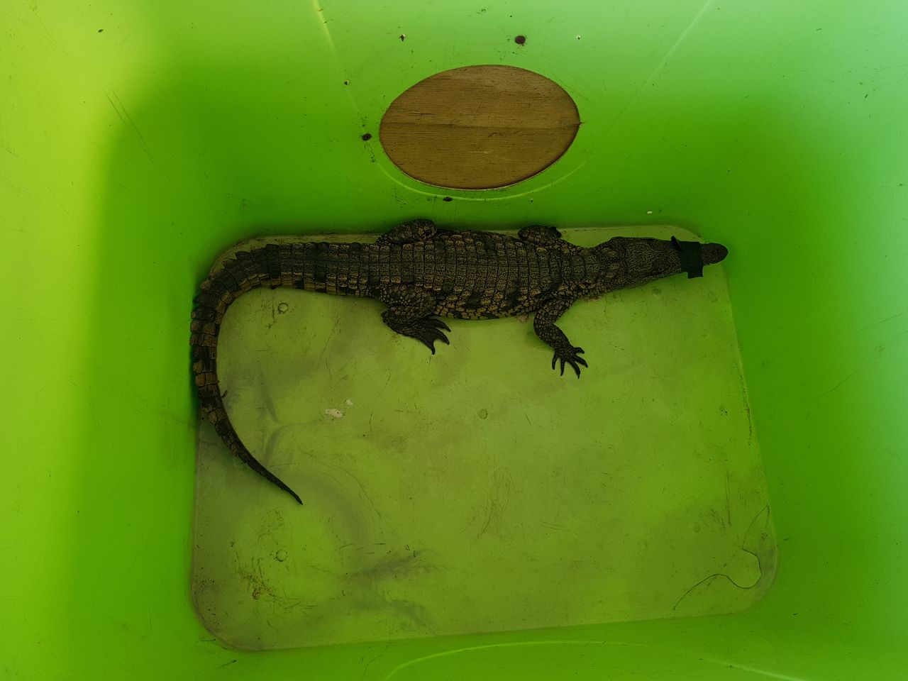 Local newsThe small croc managed to escape after being caught last week.