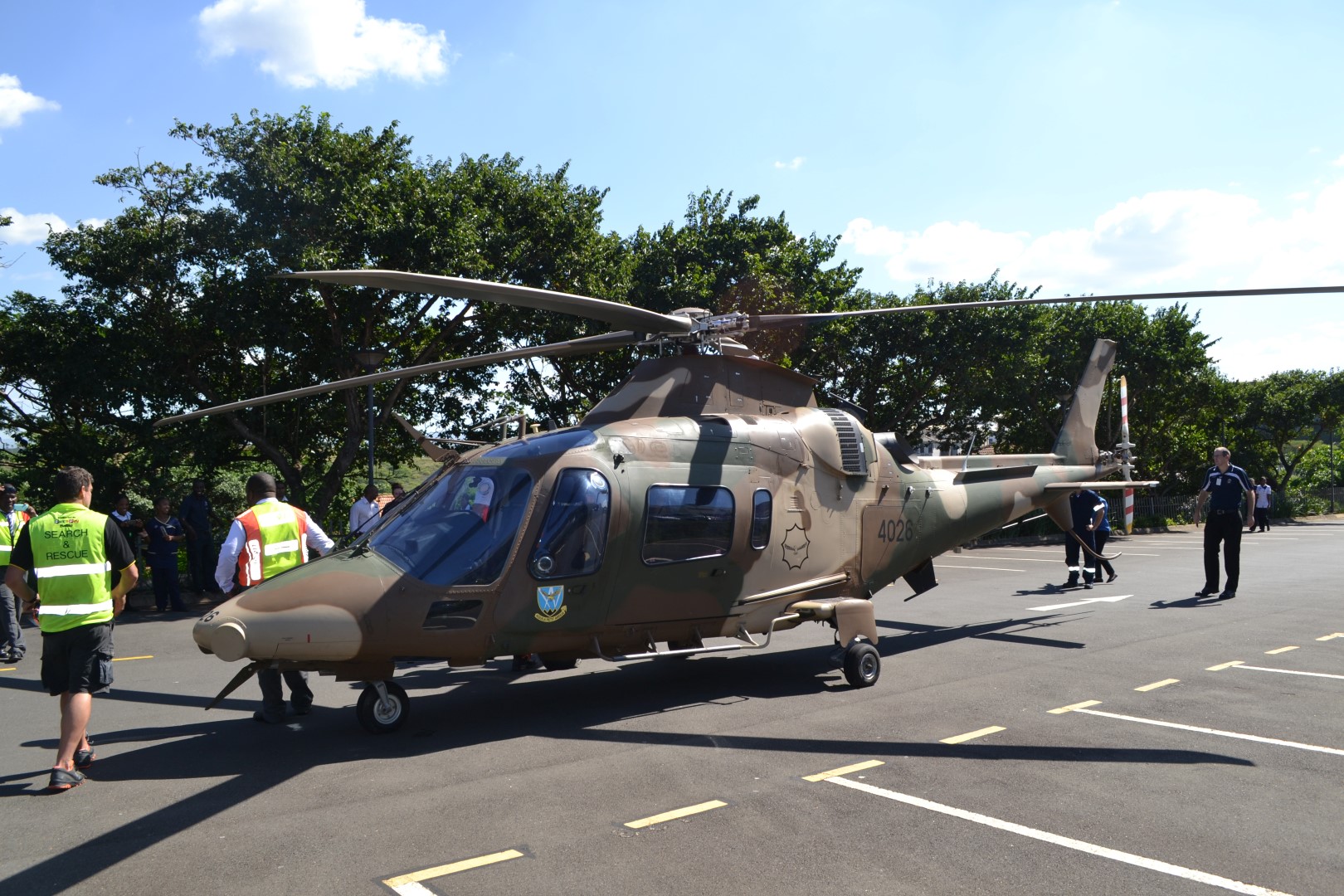 Local newsLocals were abuzz at the sight of a military camouflage helicopter landing at Alberlito Hospital this afternoon.