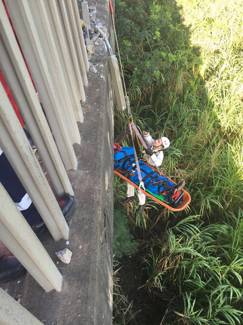 Local newsParamedics had to be lowered down from the bridge to rescue the driver.