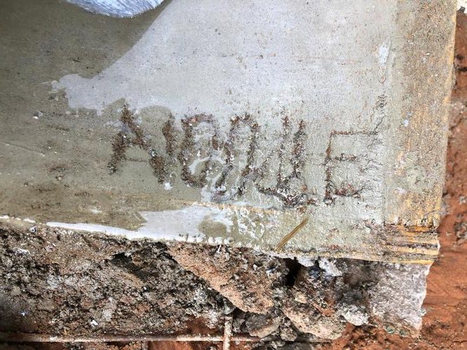 Names were carved into the original concrete slab and it now has to be redone.