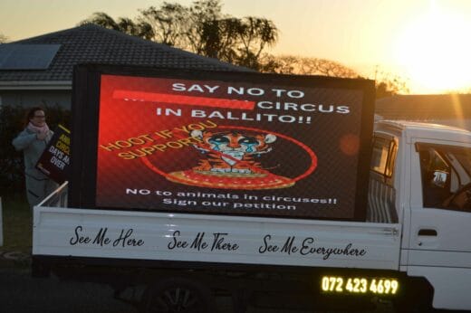 “All animals suffer in circuses, but big cats are particularly vulnerable because their instinctual needs are so vast and complex. Scientific studies and reports consistently demonstrate that the confinement, transport and forced performances lead to severe welfare concerns for lions and tigers,” said Four Paws SA director, Fiona Miles.