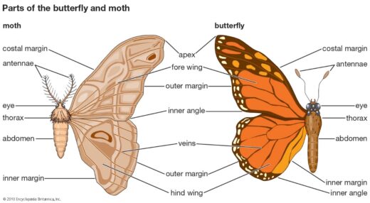 Butterflies and moths can be distinguished by several key features. Butterflies are typically active during the day (diurnal), have slender bodies, and rest with their wings held vertically over their backs. Their antennae are usually clubbed at the tips. In contrast, moths are mostly nocturnal, have thicker, often furry bodies, and rest with their wings spread flat or tent-like over their bodies.