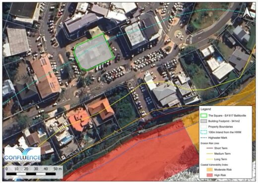 A separate town-planning application seeks to amend the current height restriction from four to six storeys, allowing the building to reach 20.25 metres. As it lies within 100 metres of the high-water mark, environmental authorisation from the EDTEA is required.