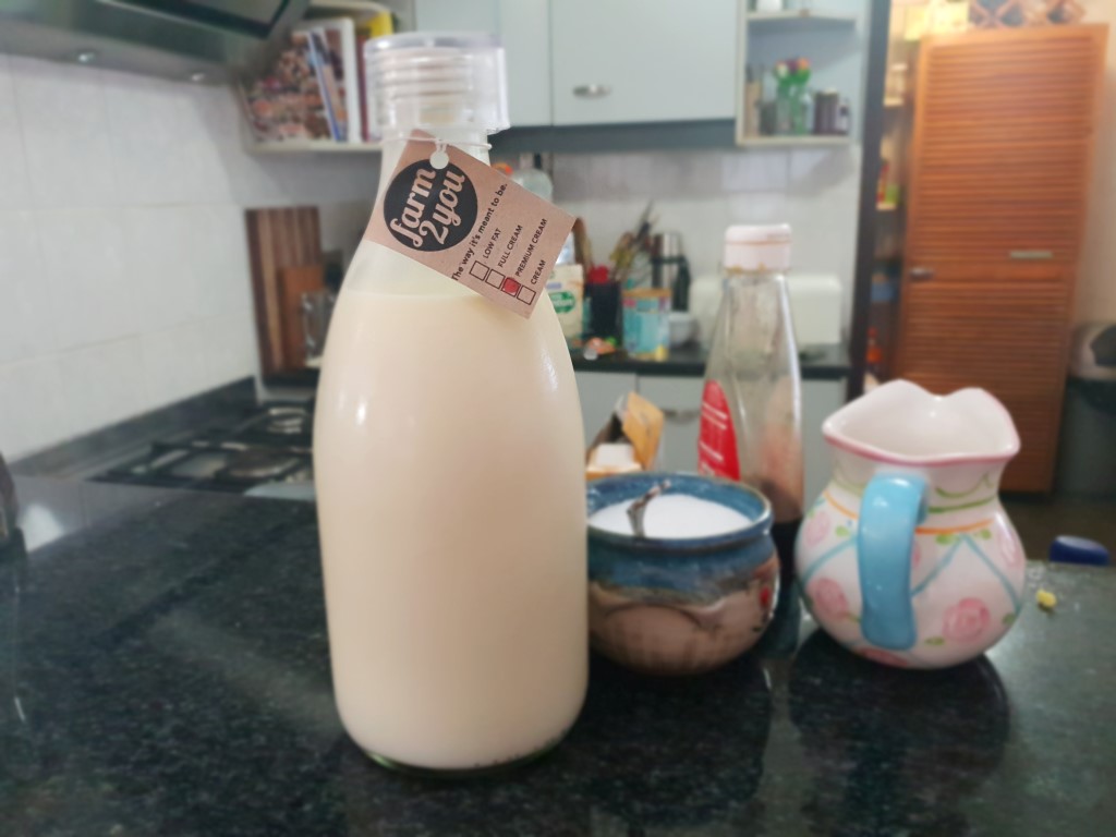 Then I discovered that Amanda Maidman receives ‘Farm2You’ milk in bulk from Khulisani Farm in the KZN Midlands. What a win. The milk was creamy and delicious.