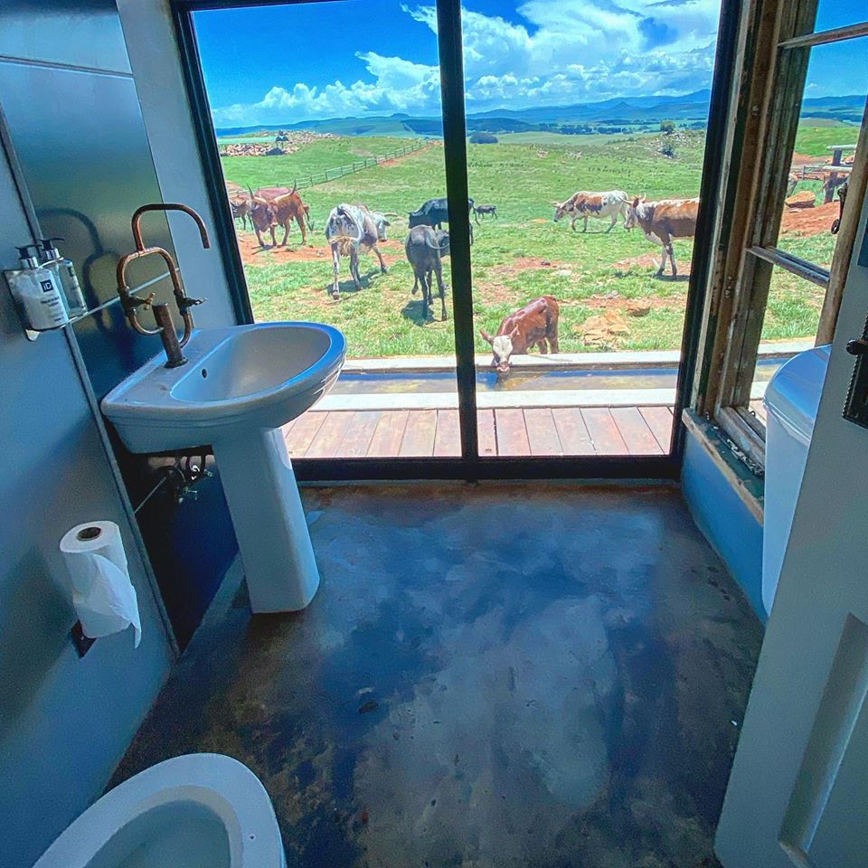 The view of the Drakensberg mountains was spectacular and even the loos had been designed with the view in mind.