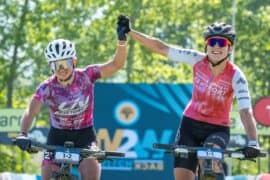 Tyler (21) and Candice (33), who grew up on the KZN South Coast but now lives in Noordhoek, completed a clean sweep of all three stages for the third year in a row. The pair won with a time of 8:33:34, finishing 12 minutes and 10 seconds ahead of Margot Moschetti and Claudia Peretti of e-Fort MB Race.