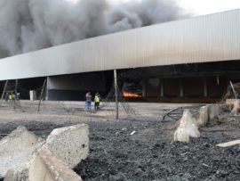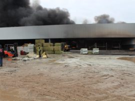 Firefighters successfully removed all the highly explosive material from the Rossburgh warehouse yesterday. Hay bales and ammonium were stored in the building, and firefighters with warehouse employees, worked furiously through Friday night to separate the flammable materials from the flames. Saturday saw the hay and ammonium removed from the building.