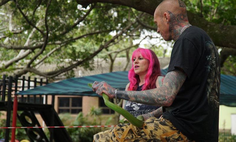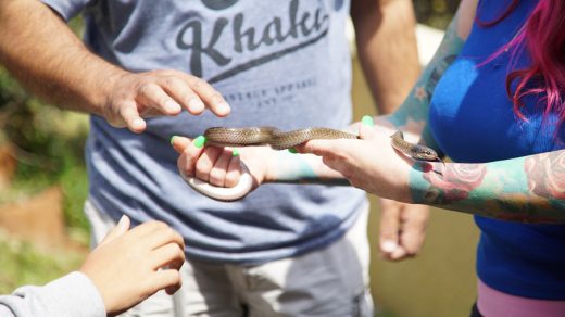 When Simon and Siouxsie capture a snake, they offer the clients an opportunity to touch and interact with the snake.