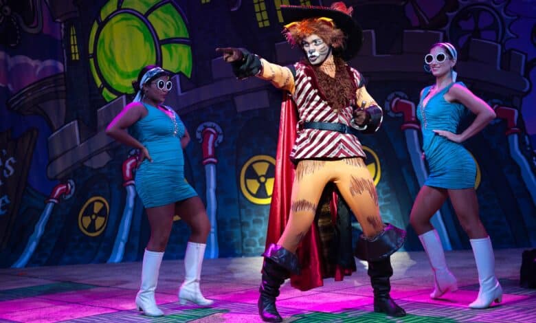 Set on an enchanted Caribbean Island, the rollicking family panto version of Puss in Boots features sumptuous sets, colourful costumes, song, dance and jokes aplenty. It stars the ‘fur-midable’ Rory Booth in the title role, with William Young as his hapless owner, Tom Marzipan, Blessing Xaba is Tom’s long-suffering mother, Merry Marzipan, and Lyle Buxton as his meathead of a brother, Tristram.