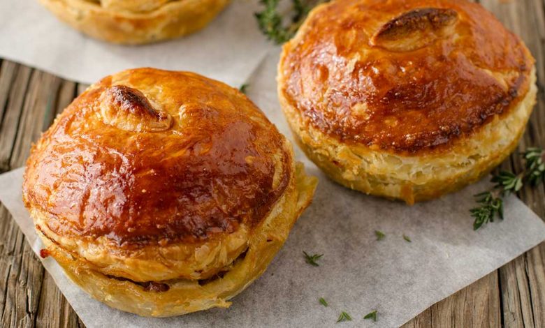 Bake the pies in an oven preheated to 180°C for 25 minutes or until the pastry is puffed and golden.