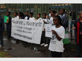McAuley House School and the Deutsche Internationale Schule Johannesburg (DSJ) gathered together to participate in a silent protest campaign entitled ‘Kwanele-Kwanele’ (Enough is Enough!) which stands against woman and child abuse as well as the recent spate of xenophobic violence in South Africa.