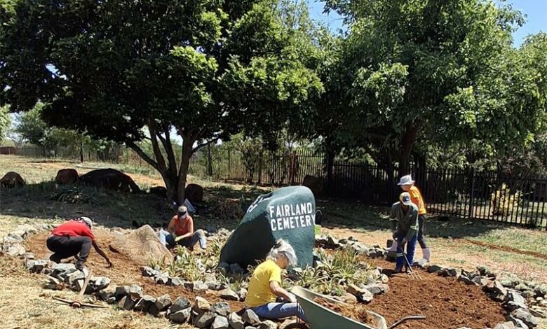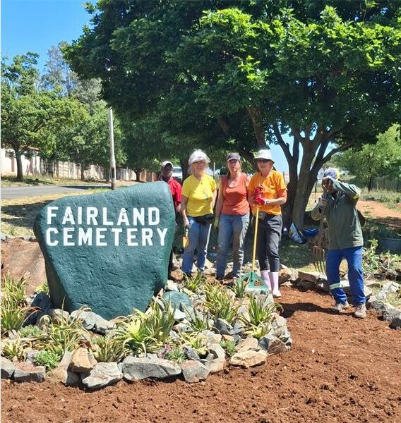 The transformation of the new rockery was a hands-on effort. Community Cleaners volunteers Margerith Marais and Karen Swanepoel took the lead on the design – painting, laying out, and planting – working over several days to bring the project to life. “Fairland Cemetery has always been a quiet, hidden place, and many residents didn’t even realise it’s here,” said Swanepoel. “The rockery and sign change, they make the cemetery visible and respected, while also creating a welcoming entrance into Fairland.”