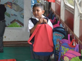 Tyrell grabbed his bag and was ready to follow his mum out the door.