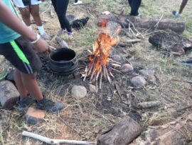 “On arrival, the learners are divided into two teams and dropped off 3km before the camp. They are then given their first task of walking the remaining distance using a map. On arrival, the camp rules are explained, and learners participate in a potjiekos competition.”