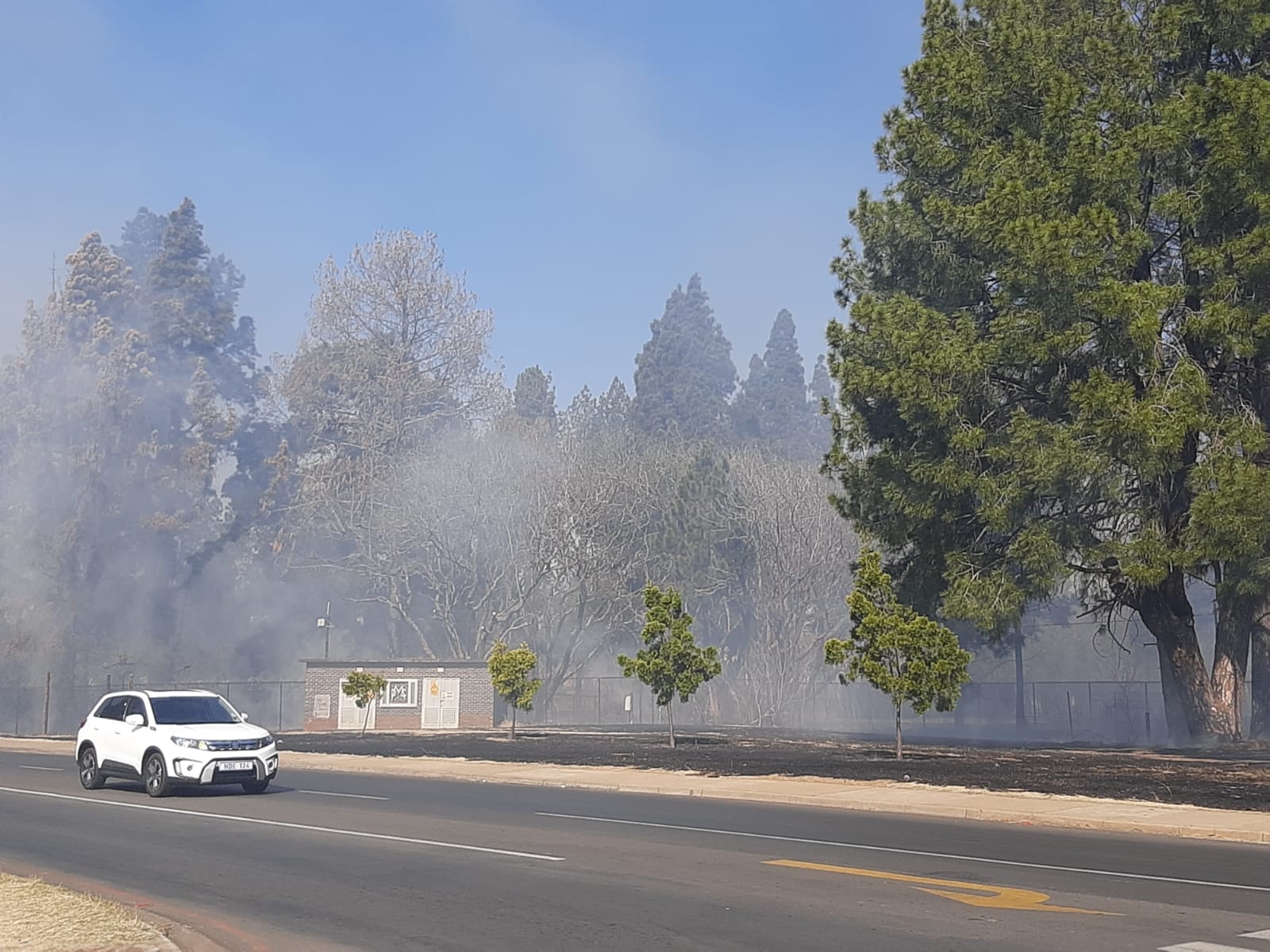 Local newsPoor visibility at the entrance to town as fire breaks out