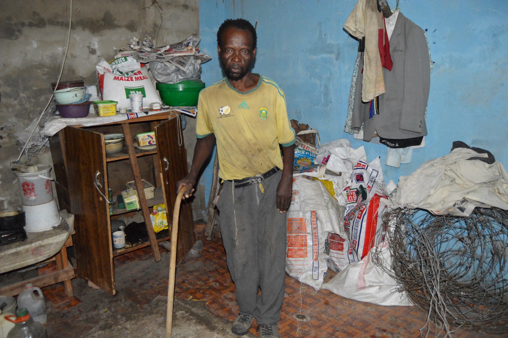 Local newsSamson Dladla's house is without furniture and is full of sacks in which he stores his possessions