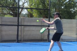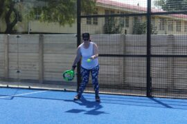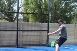 It’s usually played in doubles on an enclosed court surrounded by walls of glass and metallic mash. The court is one third of the size of a tennis court.