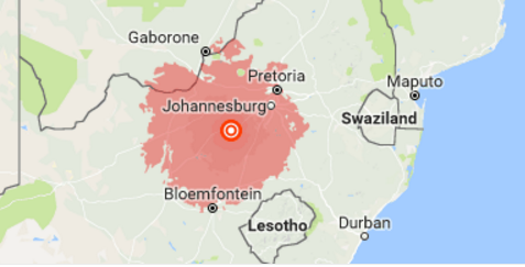 Inwoners van onder meer Pretoria, Johannesburg, Orkney en Klerksdorp het dit ook gevoel.