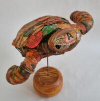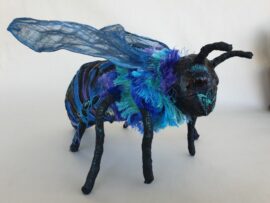 “Die diere hou my bedags geselskap terwyl ek werk. Die meeste van my beelde is van herwinde materiaal gemaak, nie net as ‘n etiese standpunt nie, maar ook omdat dit elke stuk uniek maak. Meeste materiaal soos plastiek en foelie neem jare om te disintegreer en as ek dit binne my beelde gebruik doen ek my deel vir herwinning. “Ek sien my beelde as die wêreld se mooiste ‘asblikke’.”