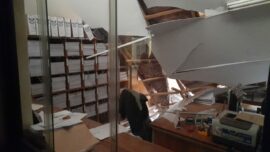 Die voorval het net na 16:00 vanmiddag plaasgevind. Niemand is in die voorval beseer nie. Die gebou is onveilig verklaar en is tot verdere kennisgewing toe vir die publiek.