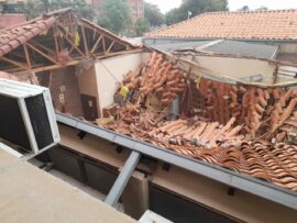 Die plafon het glo al verlede jaar inmekaar gesak by die kontantstoor waar die dak nou ook vandag finaal die gees gegee het.