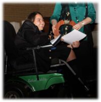 “My ouers het my glad nie as ‘n gestremde grootgemaak nie. Ek was in hoofstroom skole, en het ook werkies om die huis gehad, ek het ook pakslae gekry.”