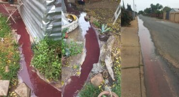 Riool, bloed en afval vloei deur erwe