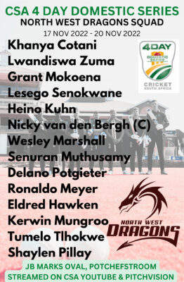“We are looking forward to those three taking to the field against the Lions. We know the experience of Heino Kuhn, as well as Lesgo’s ability from an opening batsman point of view. Eldred Hawken has also shown what he can do with the ball,” stated NW Dragons head coach, Craig Alexander.