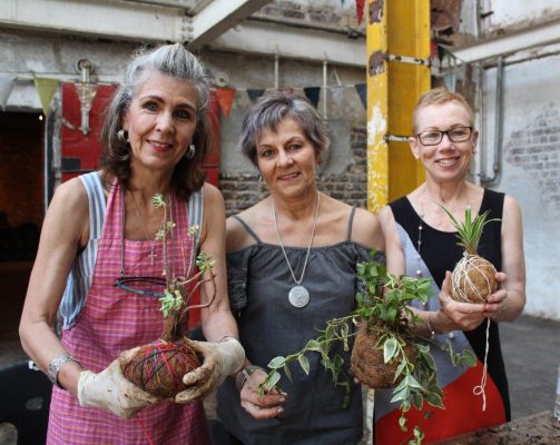 Saterdag, 24 Oktober, het ‘n groep vrouens geleer om ‘n Japanese mosbol, ‘n kokedama, te maak en dit geniet om in die grond en met plante te werk. Hulle het ‘n grondbal gevorm en binne die bal ‘n plantjie geplant wat met mos oorgetrek is. Dié kokedama word opgehang en groei in die mosbol tot dit te groot word en weer uitgeplant moet word.