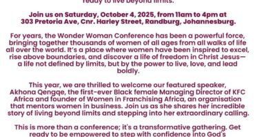 Local newsThe Wonder Woman Conference returns to Randburg on 4 October, uniting women of all ages for a transformative day of…