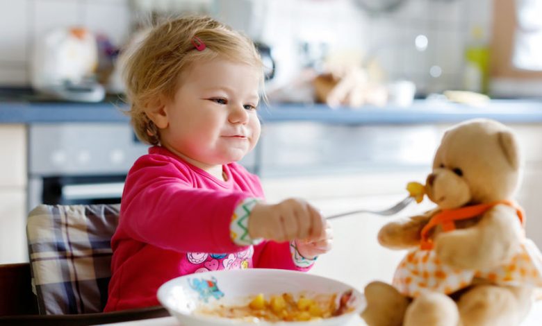 Learning to eat from a spoon takes practice and time. A child will typically self-feed from nine to 12 months, and will not use a fork or spoon until after 12 months of age. On average, children will master using a spoon by two to three years old. The older your child gets the more table manners matter. People are put off and annoyed by messy eaters. Toddlers can get away with throwing their food around. After that, eating “politely” should be encouraged.