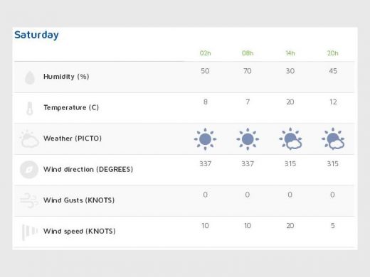 Focusing on Saturday, 15 July, the maximum temperature will be 22°C and the minimum 6°C. Sunday, 16 July will be slightly warmer with temperatures starting at 6°C and reaching a high of 23°C.