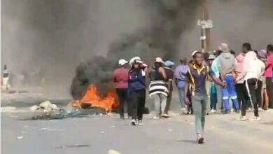 Residents barricaded the entrance to Simunye with rocks and burning tyres but retreated shortly thereafter. No violence erupted.