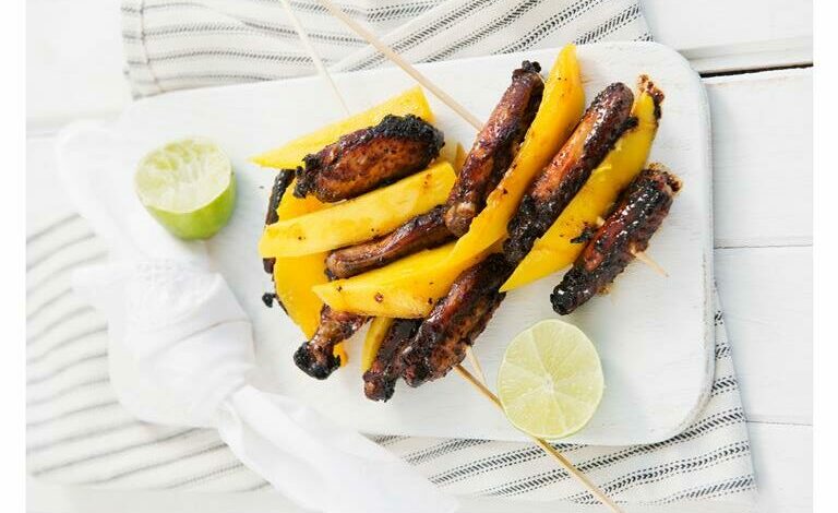 Toss raw chicken wings in Cajun spice with honey and mango juice. Grill on the braai or under an oven grill until crispy and slightly blackened. Serve on skewers with mango slices and lime wedges. Ideal for a summer braai!