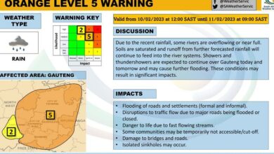 SAWS issues level 5 warning for Gauteng