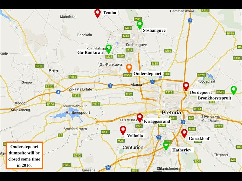The only metro dumpsites currently operational were Onderstepoort, Hatherley, Soshanguve, Ga-Rankuwa, and Bronkhorstspruit.