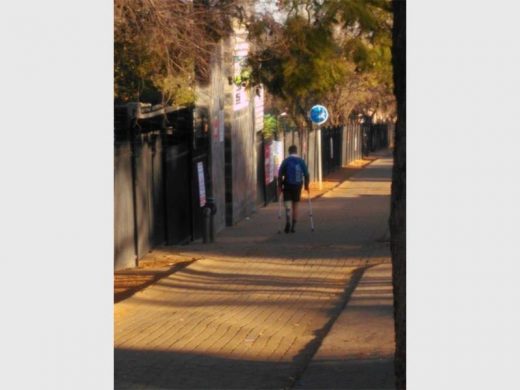 Jacques posted a photo on the “Steyn se storie” Facebook group in his school uniform walking towards the school gate with his temporary leg and crutches.