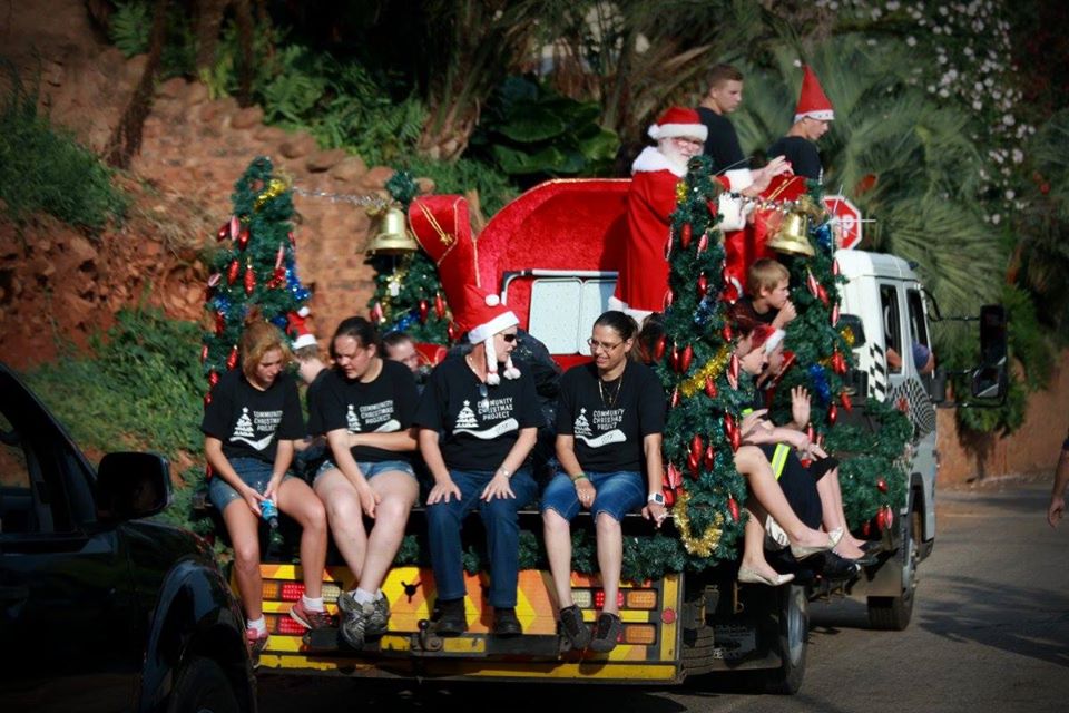 Every year, residents drive through the streets of Pretoria with a parade of lights and hand out packets for children and the elderly.