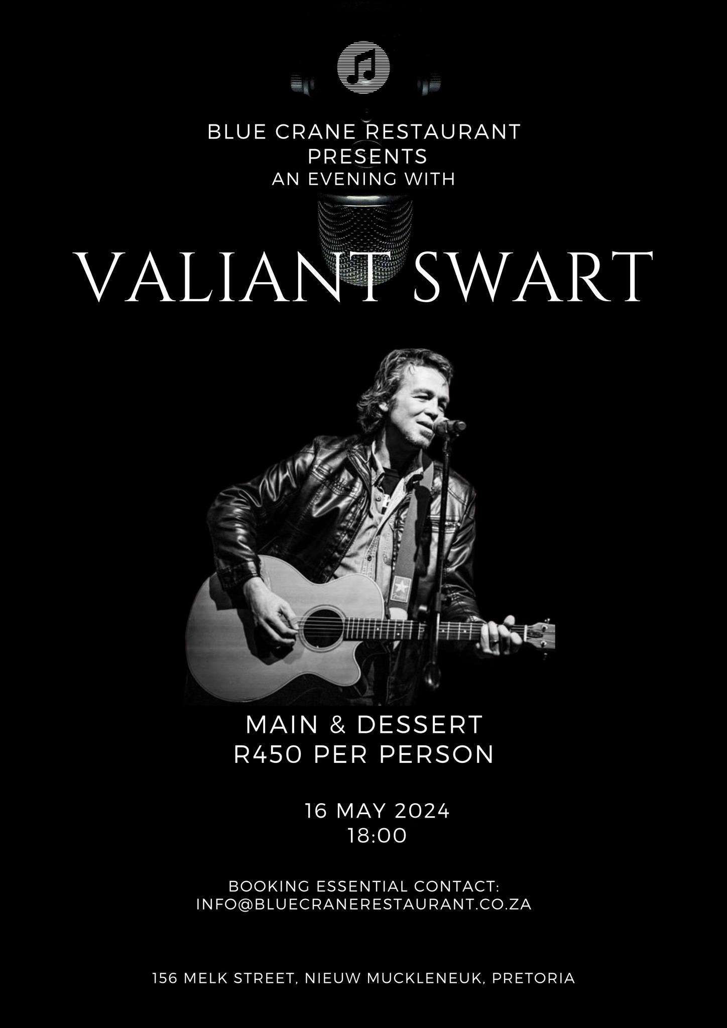 Do not miss out on this intimate event where Swart will showcase some new and some old stories and melodies.