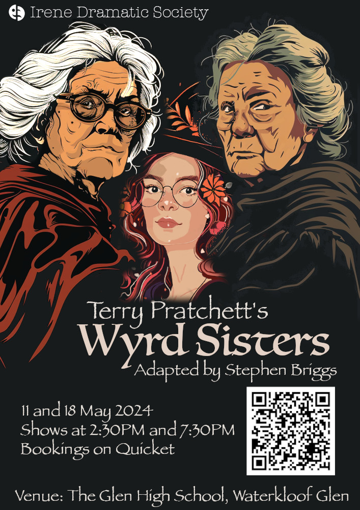 Adrian Van Der Merwe and Irene Dramatic Society hosts the return of Irene Dramatic Society to Terry Pratchetts’s Discworld for a production of “Wyrd Sisters” adapted for the stage by Stephen Briggs.