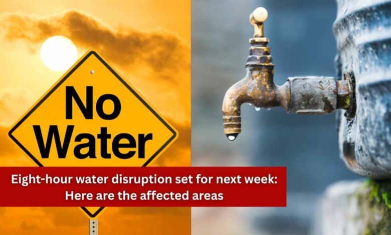 Eight-hour water disruption set for next week: Here are the affected areas