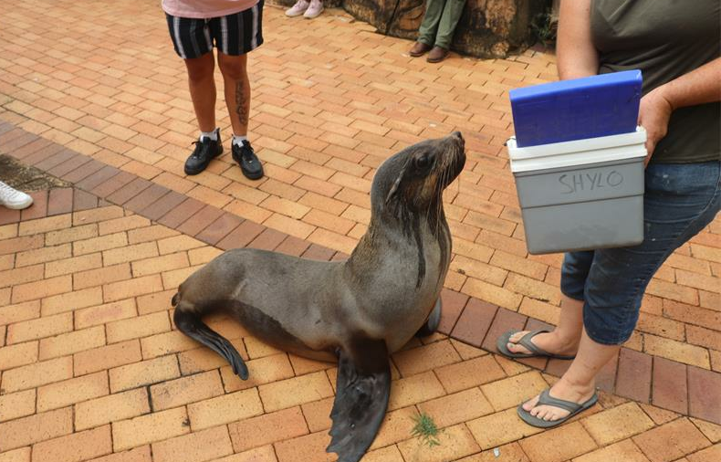 Shylo is an 11-year-old neutered male seal that was rescued in Bayworld, Gqeberha. He is a shark-bite survivor that was released back into the wild after rehabilitation but brought back when fishermen reported he regularly returned to shore to steal their fish.