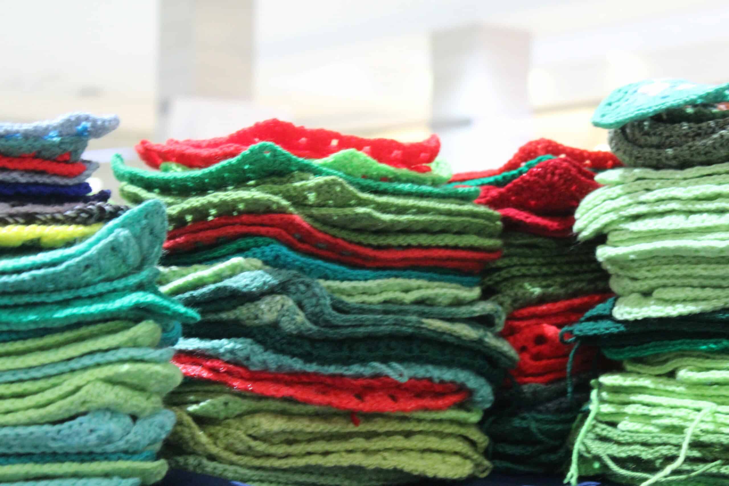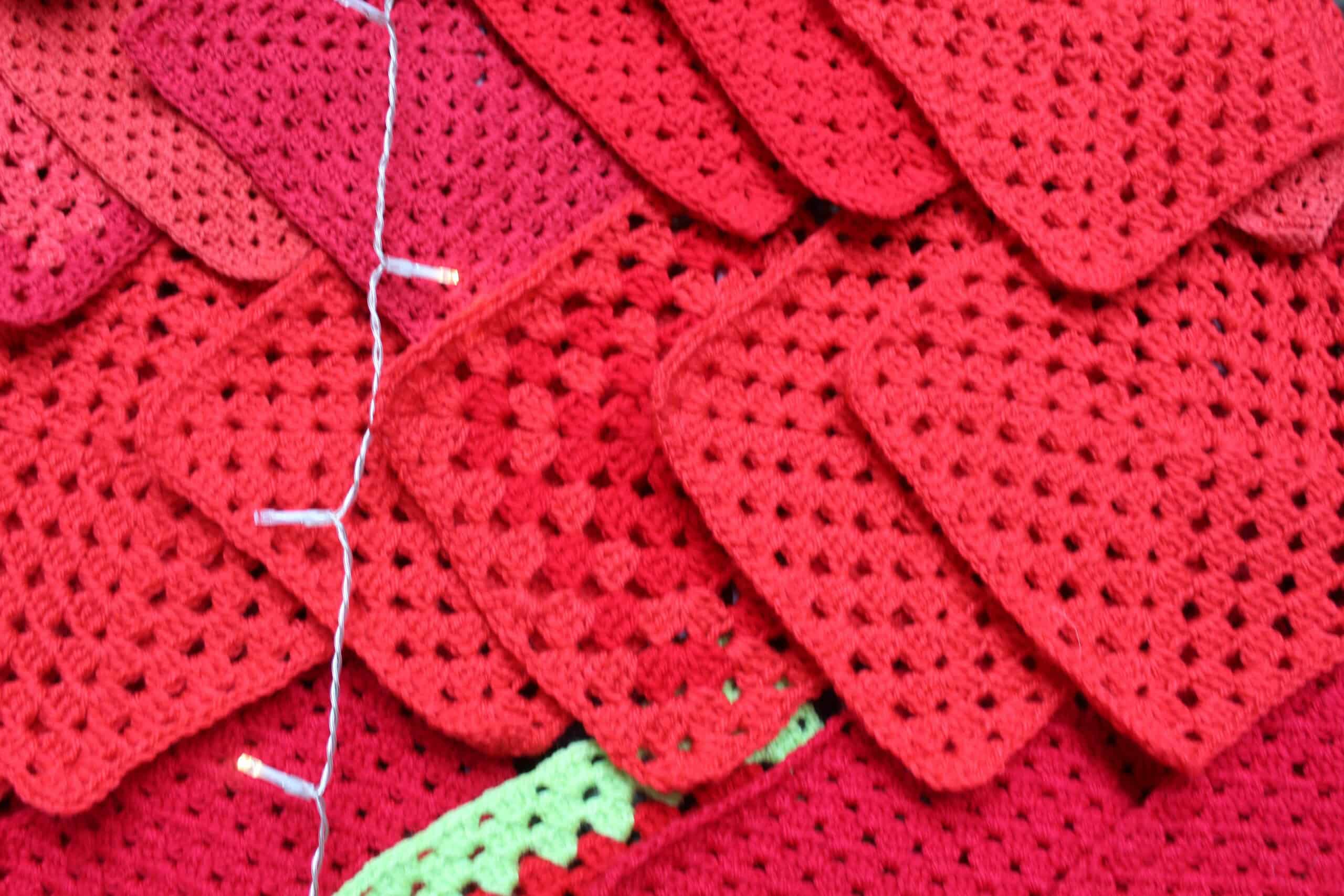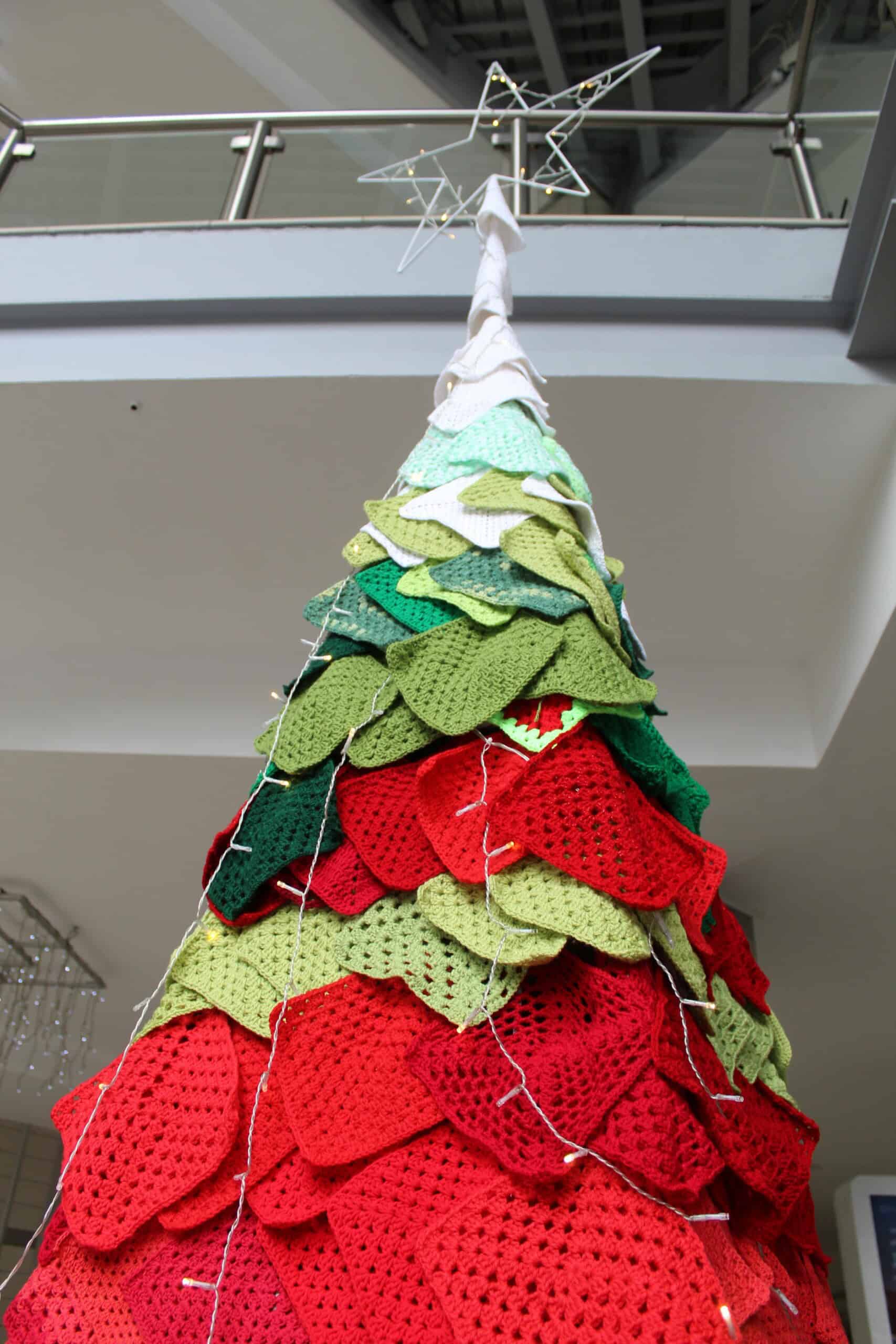 Instead of dressing in festive colours, participants brought the colours with them, arriving with hundreds of handmade crochet squares in shades of red, green and white. These Christmas-themed blocks were stitched together to form a striking yarn-based Christmas tree.