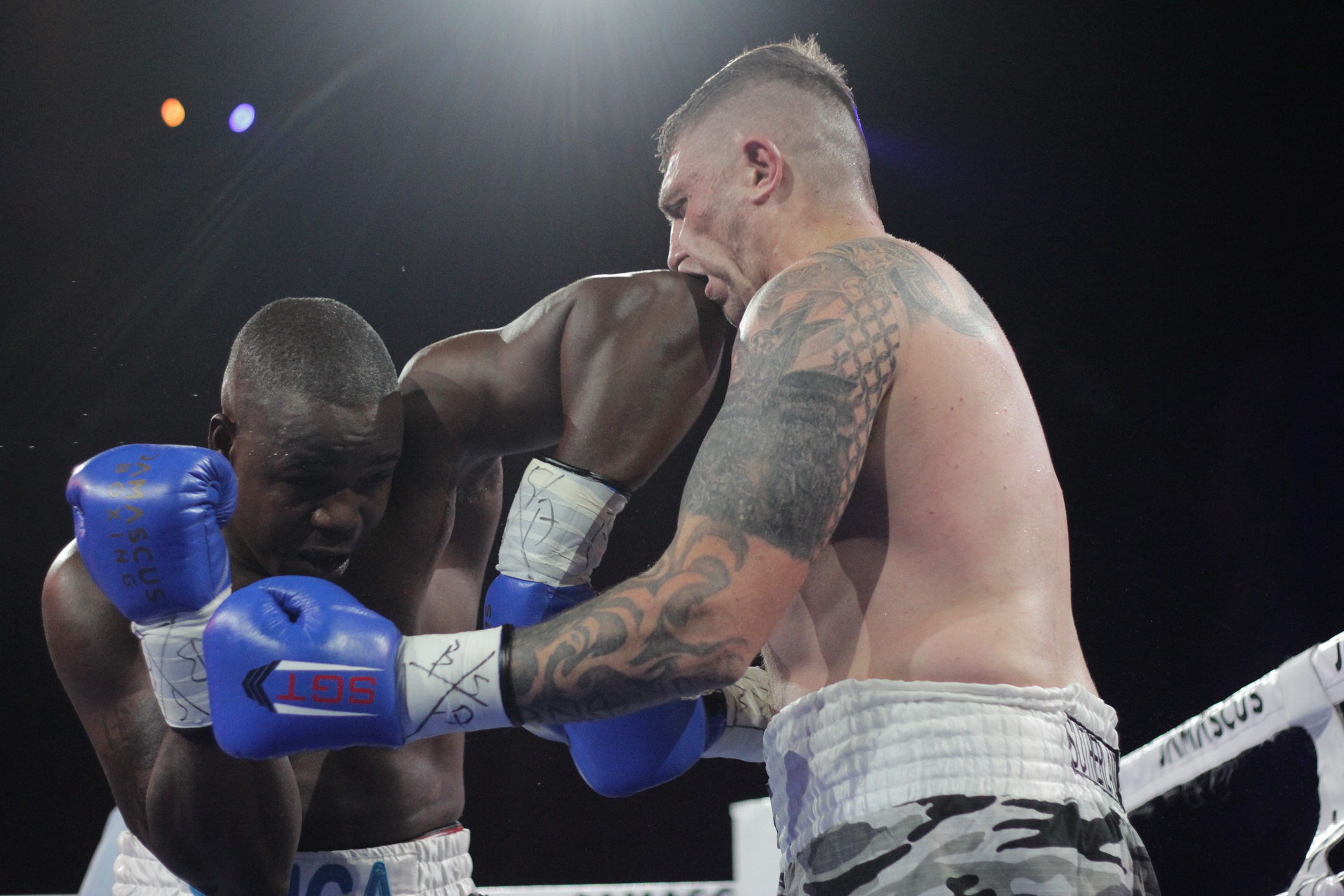 The closest it has come to a knockout was two boxers who were knocked down, but then survived the eight seconds count. It happened in the cruiserweight fight when Chris Thompson briefly sent Lebo Moshitoa to the canvas in the fifth round, while young Josh Pretorius also did so in the second round of his heavyweight fight against Kizito Rumhanya. Both Thompson and Pretorius finally scored wins by points-decision,