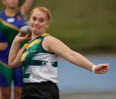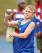 Another boy from the host school, Jandré Coetzee’s record attempt of 12.85m in the shot put is also outstanding.
