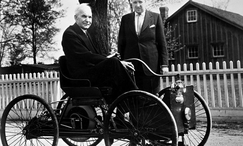 Henry Ford’s career as a builder of automobiles began in the winter of 1893 when his interest in internal combustion engines led him to construct a small one-cylinder gasoline model while working as an engineer for the Edison Illuminating Company in Detroit. The first Ford engine spluttered its way to life on a wooden table in the kitchen of the Ford home, and a later version of that engine powered his first automobile, which was essentially a frame fitted with four bicycle wheels and given the name “quadricycle”. The quadricycle was the first Ford car and symbolised the foundation and success of the Ford Motor Company.