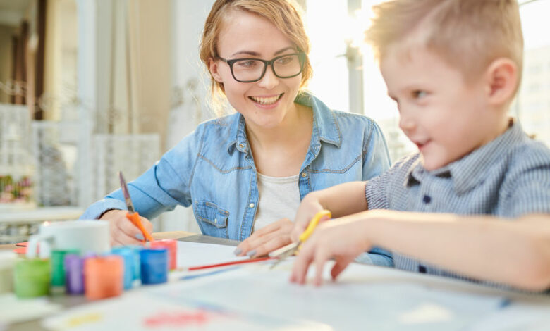 - Help your child cut strips of paper and glue them together to make the arms.