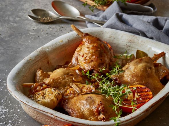Indulge in confit of duck with zesty clementine sauce