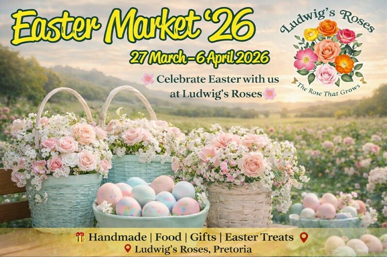 Annual Easter indoor exhibition market on the Rose farm. The Rose Shed will be filled with many different stalls displaying a wide variety of products for sale. What to expect: rose arrangements displayed in our shed; buy the vase and receive the cut roses for free; tractor train rides through the rose fields (only on weekends); kids’ play area; drinks and light meals at The Rose Kitchen; and parkrun on Saturdays and Rose Run on Sundays. Starts: 08:00 on March 27 until 16:00 on April 6. Enquiries: 012 544 0144.