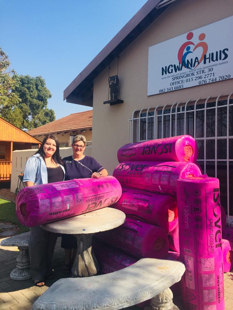 Local NewsSaint Gobain Gyproc Isover het op Vrydag, 20 September vir Ngwana Babahuis dakisolasiemateriaal geskenk.